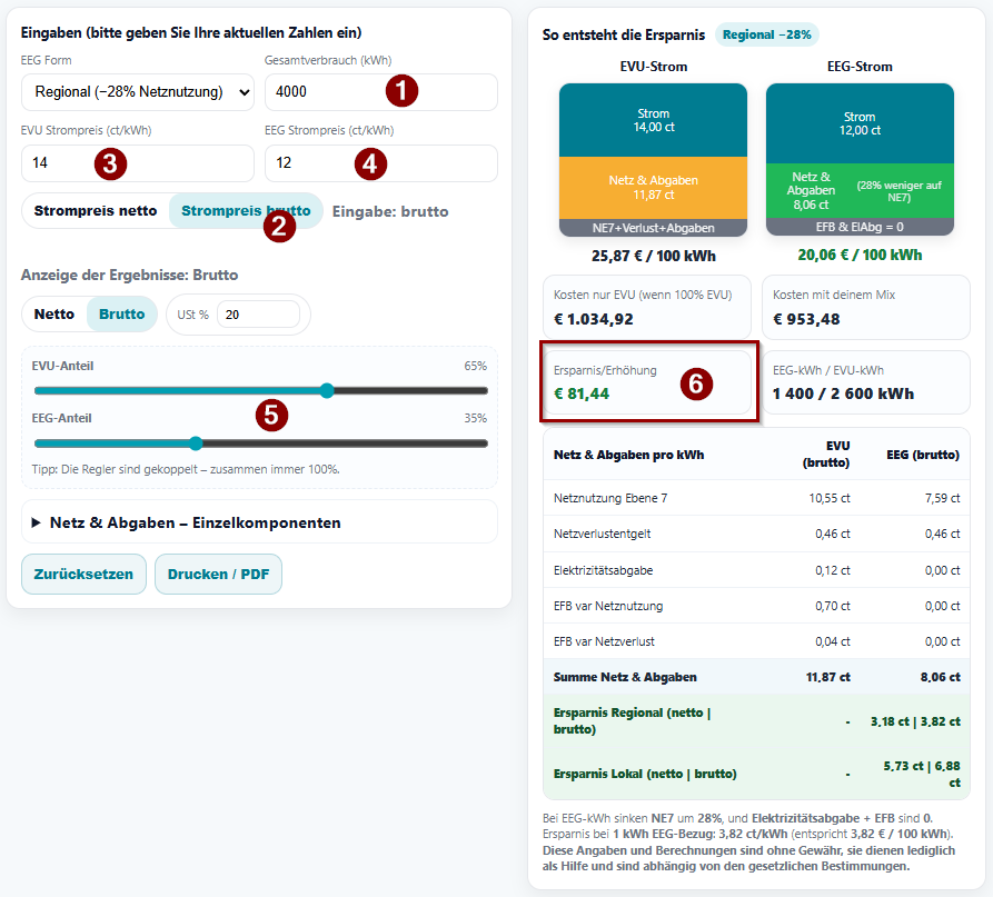 Und hier geht`s zum Berechnungstool: https://www.energieheros.org/eeg_ersparnis.html